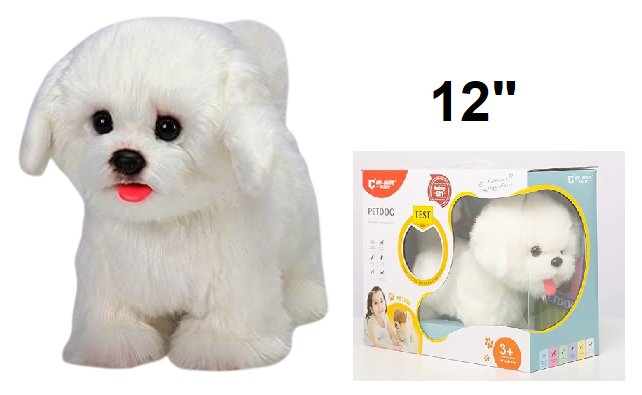 CU-MATE Plush Interactive Maltese Simulation Dog-Realistic Puppy with Walking/Barking/Wagging Tail/Talking-Like Real Robotic- 12"- WHITE DOG