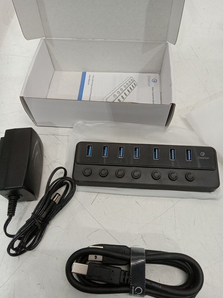 Qeefun Powered USB Hub - -Port USB 3.0 Hub - black