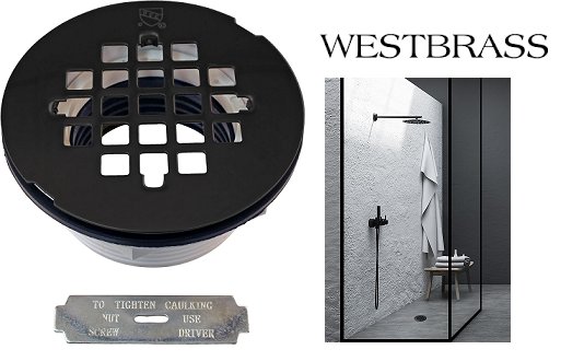 Westbrass OD Shower Drain Assembly and Grid Strainer - black matte (model: D206P-62)