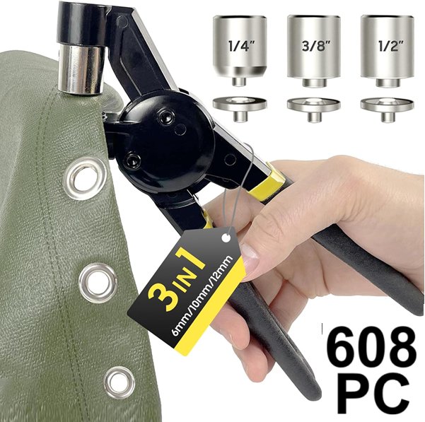 608PC HAPDEN GROMMET HOLE PUNCH TOOL KIT - 6MM/10MM/12MM
