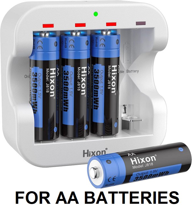 Hixon AA Rechargeable Batteries With Charger - 3500mWh High-Capacity - white