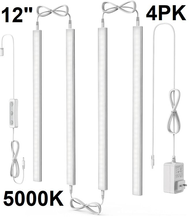 4pk ASOKO Under Cabinet Led plug-in Light - 12"/ 5000k - white (model: uno-lk)