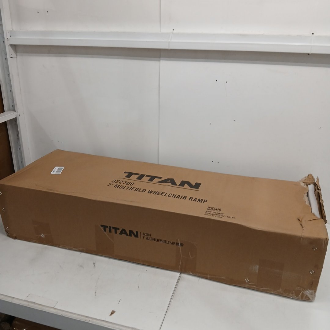 titan multi-fold aluminum wheelchair ramp - 7ft - 600lbs max - silver/black (model: 322700)