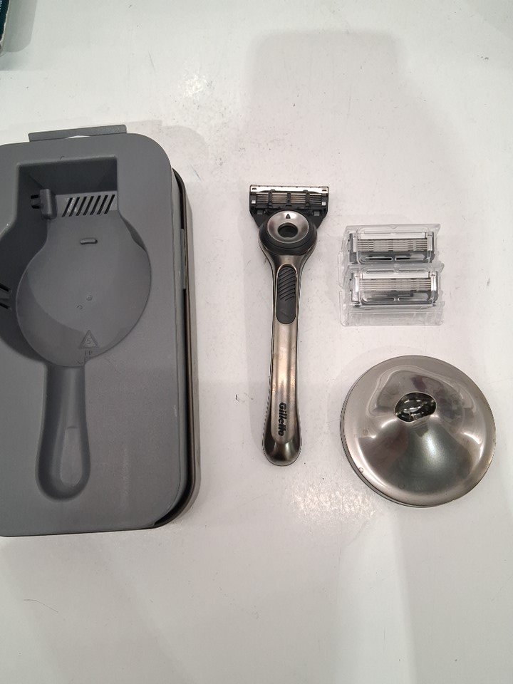 GILLETTE LABS RAZOR WITH EXFOLIATING BAR, MAGNETIC STAND AND 2 RAZOR CARTRIDGES - BLACK/GOLD EDITION