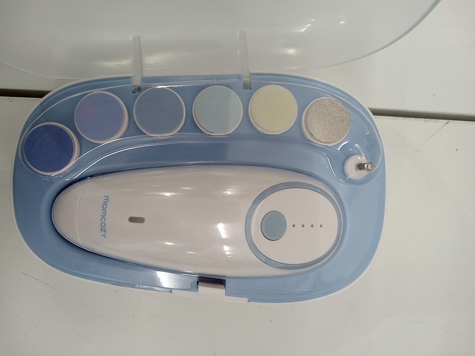 momcozy rechargeable electric gentle baby nail trimmer - white/blue(model: NC02)