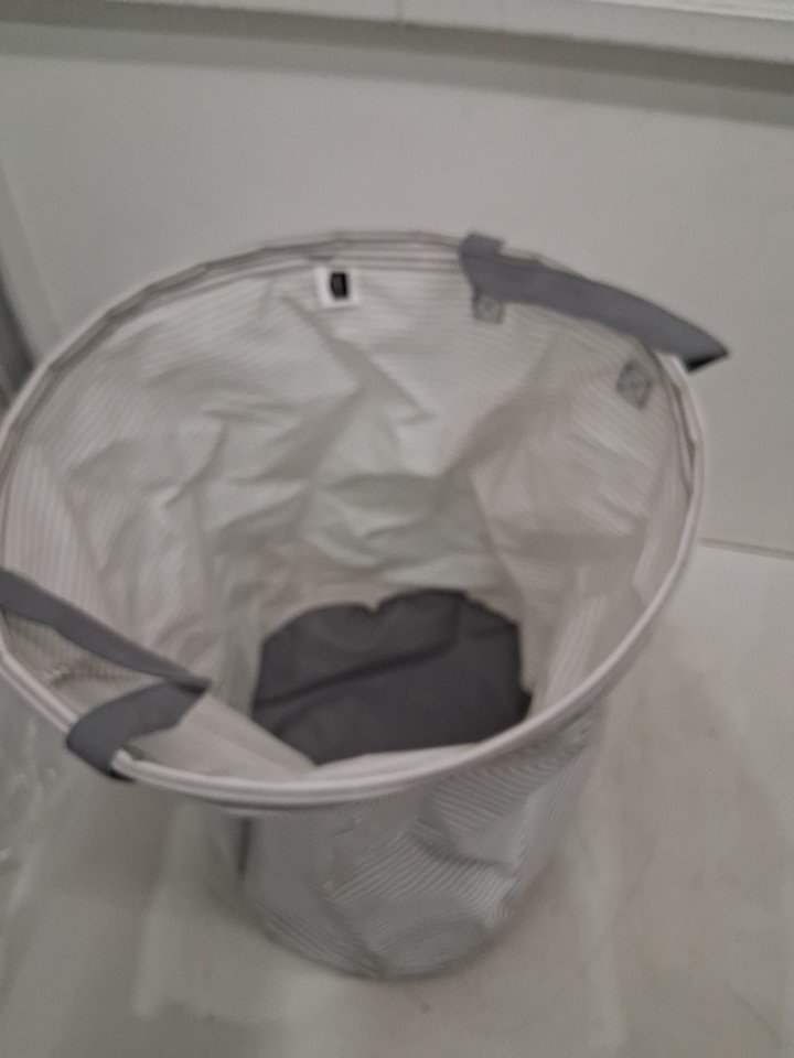 Amazon Basics Large Round Laundry Hamper Storage Basket with Handles - Striped