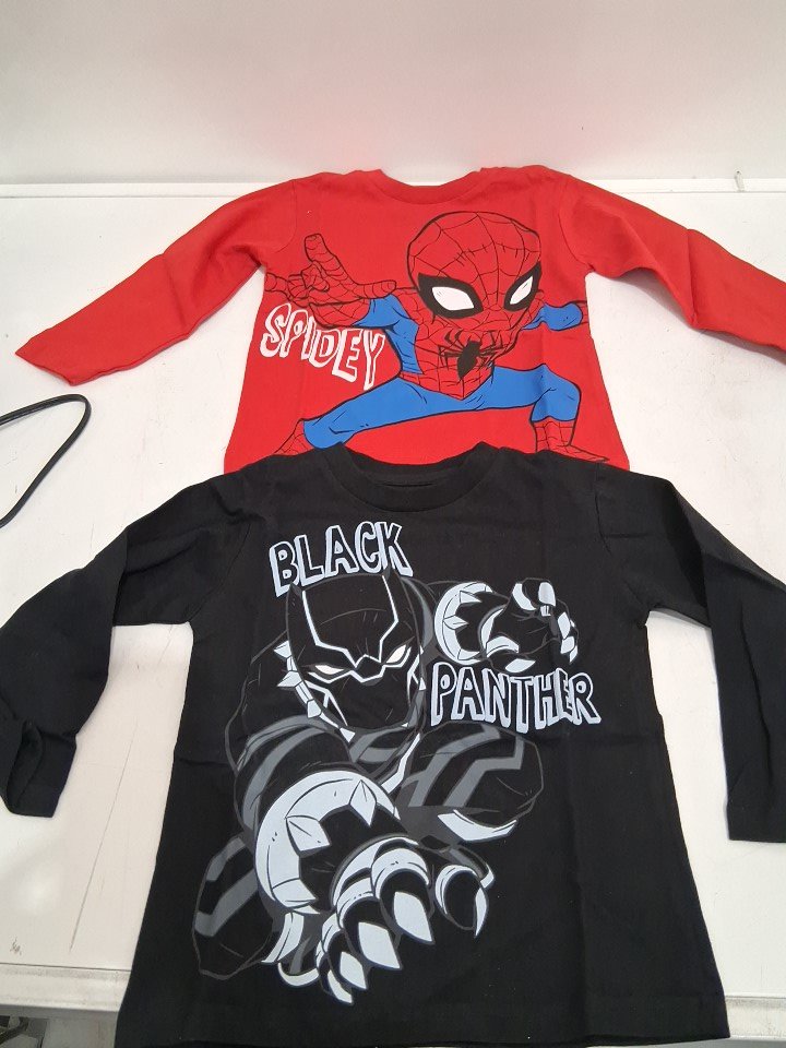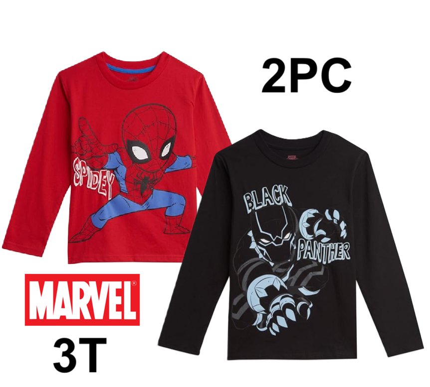 2pc marvel spiderman/ black panther long sleeve crew neck shirts- size 3T- red/black
