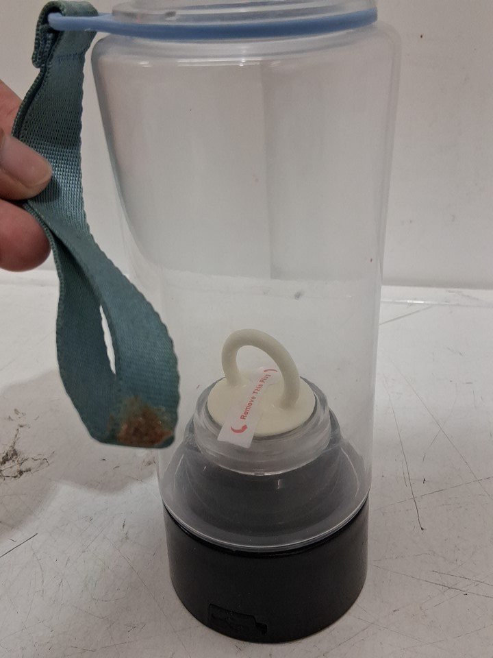 Stain on strap, bottle is cloudy from previous use. Tested for power