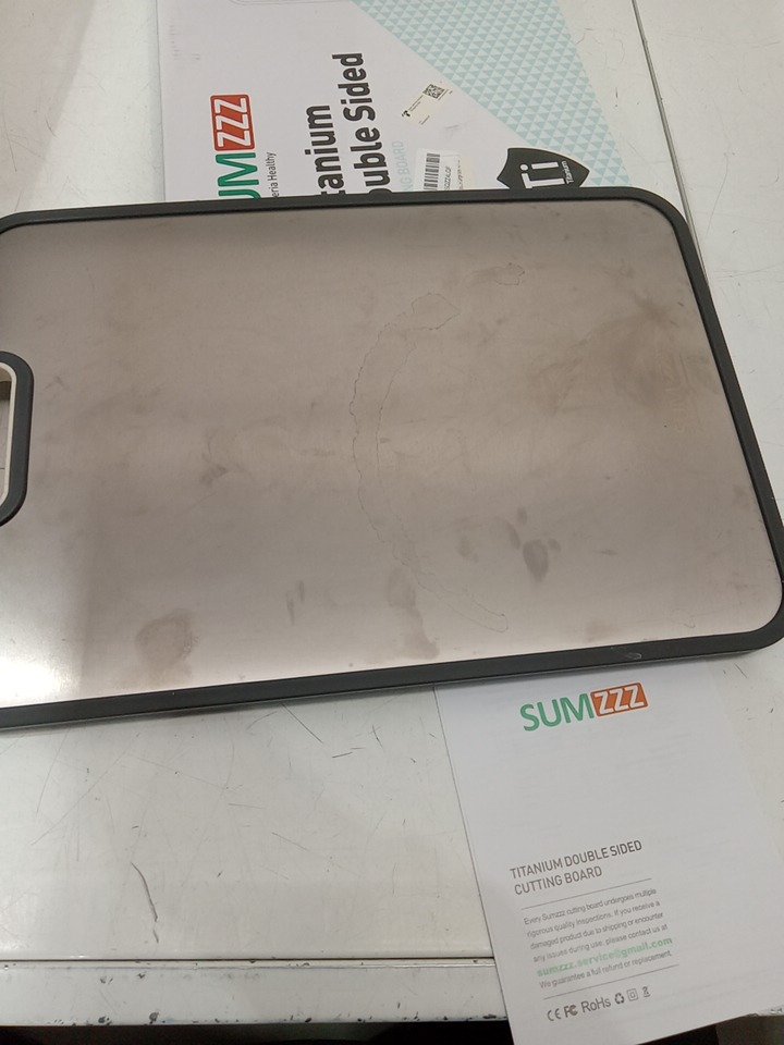 Marks/scratches on the titanium side from previous use, can likely be cleaned.