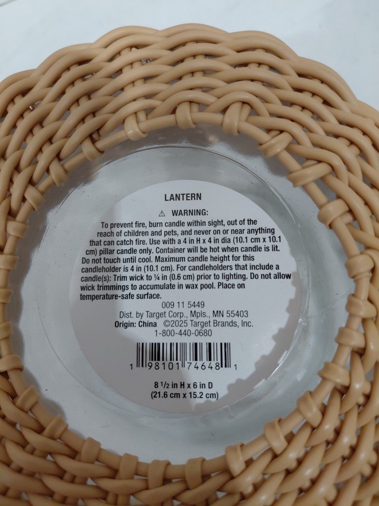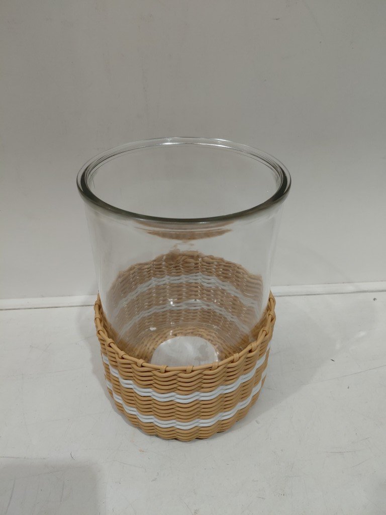 threshold Pillar Glass & Rattan Lantern Candle Holder- 8.5" - clear/white/natural wood