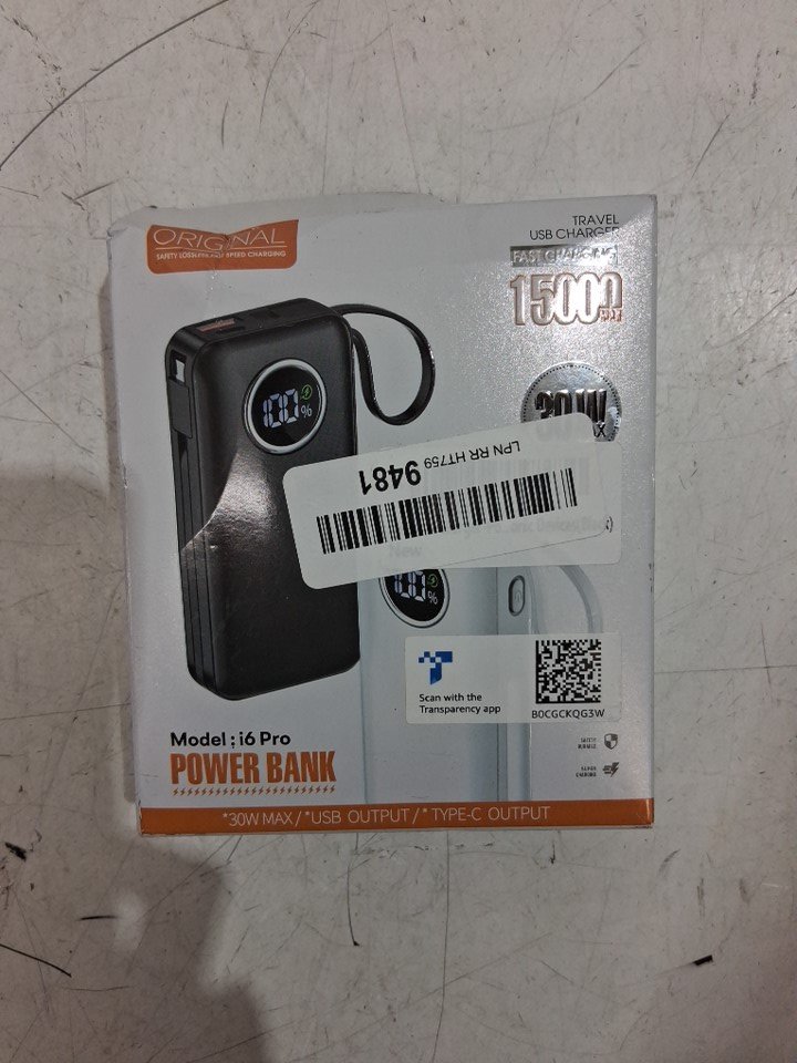 Portable FAST CHARGING Power Bank with type c and lightning bolt cable - 15000mah - black (MODEL: i6pro)