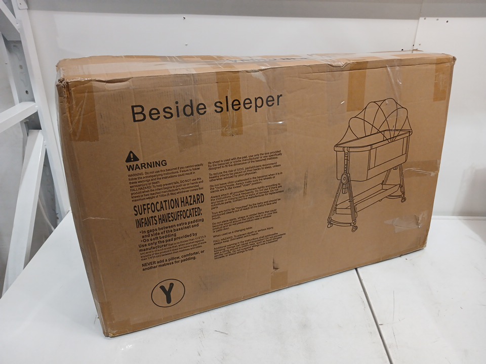 MEICHYUN Baby Bassinet with wheels & an adjustable height -36" x 22" x 29"-35" - grey/white (model: aa001)
