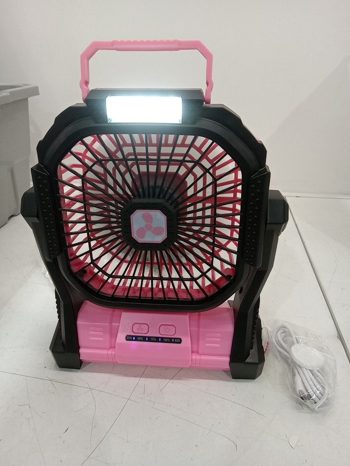 rechargeable PORTABLE Camping Fan with LED light and 4 speeds - pink/black