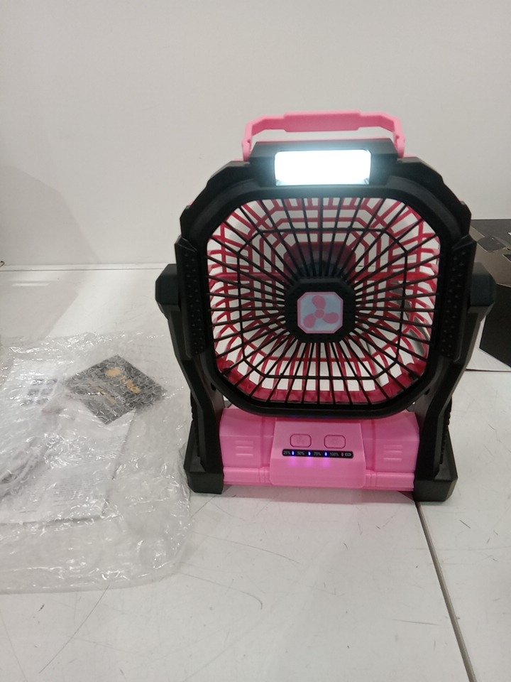 rechargeable PORTABLE Camping Fan with LED light and 4 speeds - pink/black