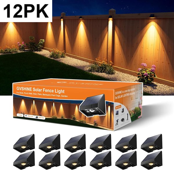 12pk gvshine outdoor waterproof solar fence lights - 2'' x 2.56'' x 2.28'' - warm white