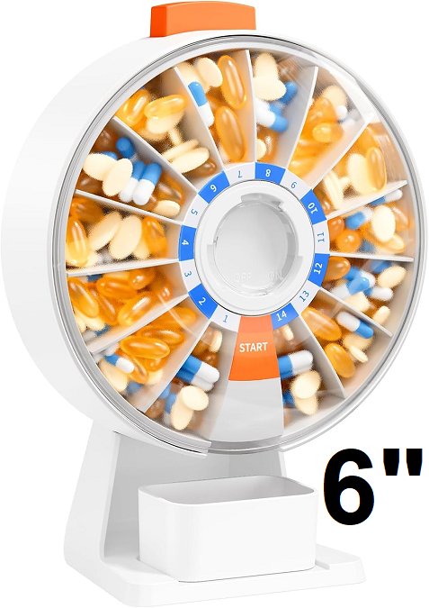 Daviky wall mounted/desk top daily Pill Dispenser - 14 days - 6" - white/orange