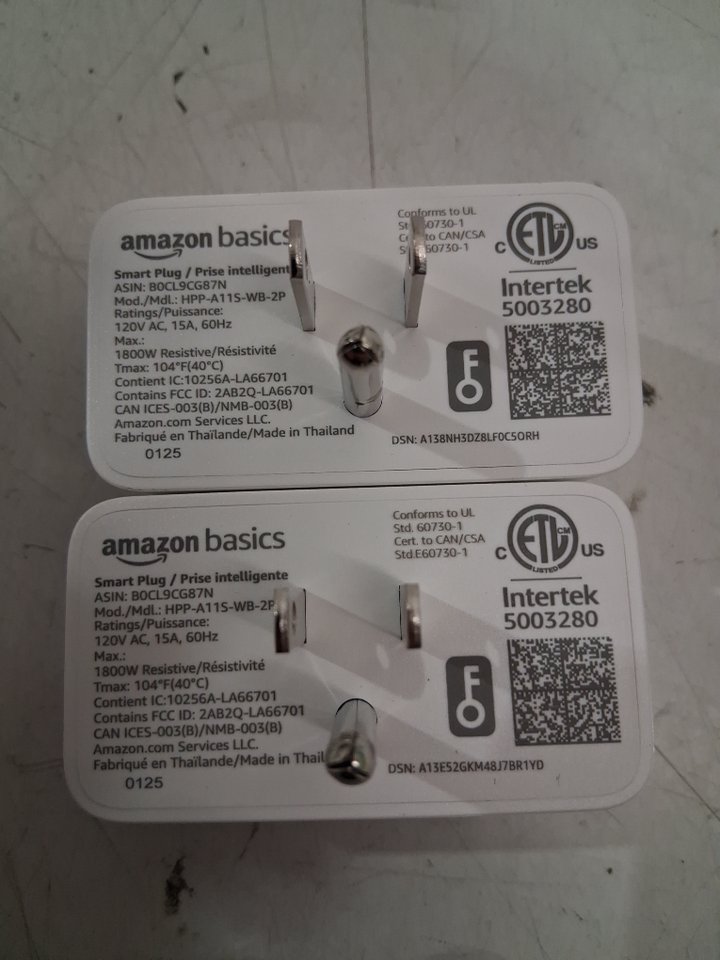 2pk amazon basics indoor smart plug, WITH WIFI CONNECTION - WORKS WITH ALEXA ONLY - WHITE