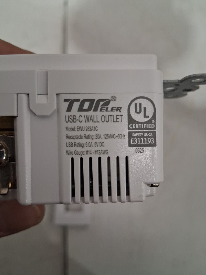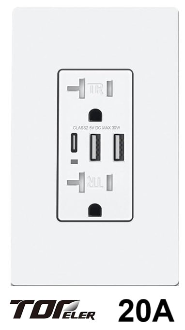 topeler wall plug/receptical with 3 usb ports - 2usb a - 1 usb c - 20A - (model: ewu262a1c)