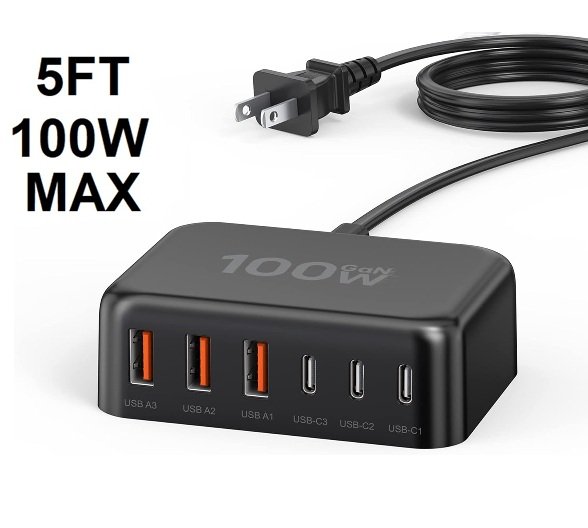 Voteen USB C Fast Charger Block GaN 6 Port Type USB C Charging Station - 100W - black (model: