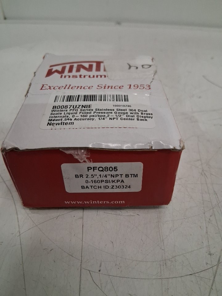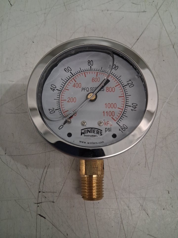 Winters Instruments PFQ Series Stainless Steel 304 Dual Scale Liquid Filled Pressure Guage With Brass Internals - 0-160PSI 1/2" Dial Display 1.5% Accuracy (Model: PFQ805)