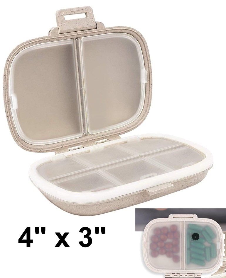 Holii 8 Compartment portable Travel Pill Organizer - 4" x 3" - khaki (model: ‎YH-002)