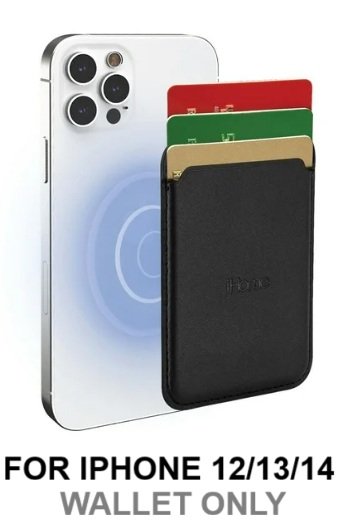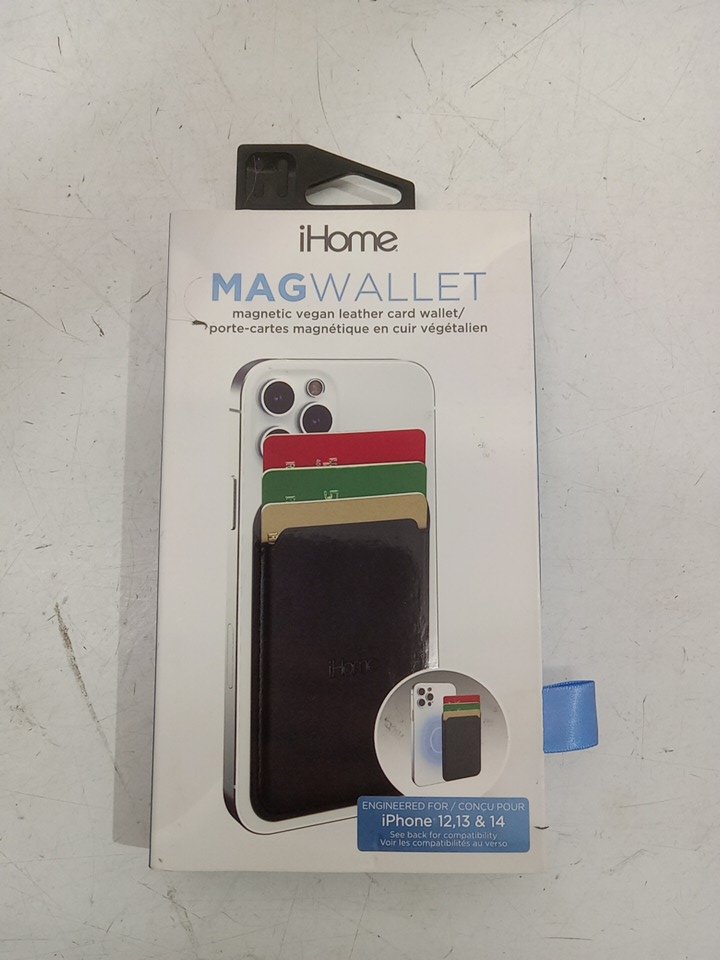 IHOME Magnetic Vegan Leather Card Wallet - for iPhone 12/13/14 - BLACK