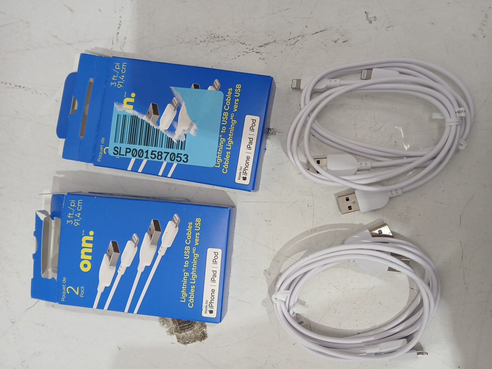 (2) 2PK Onn. Lightning to USB Cables - FOR APPLE - 3FT./0.9