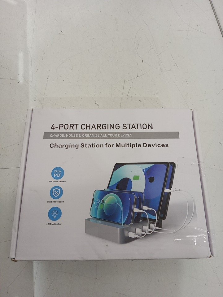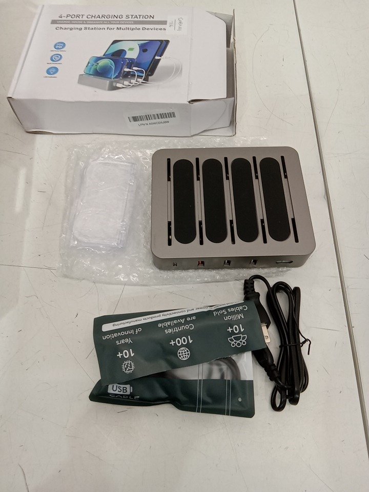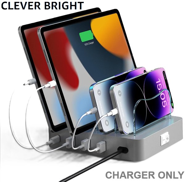 CLEVER BRIGHT USB-C Charging Station for Multiple Devices with 4 Charging PORTS - with Cellphone iPad Kindle Tablet and Other Electronic - silver (model:‎ PC004-silver)