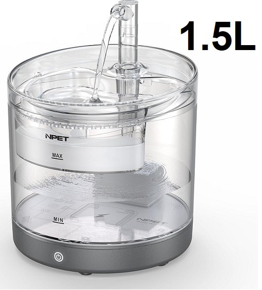 NPET WIRELESS cat water fountain - 1.5L - 4000mAh battery - Clear/silver (model: WF220)