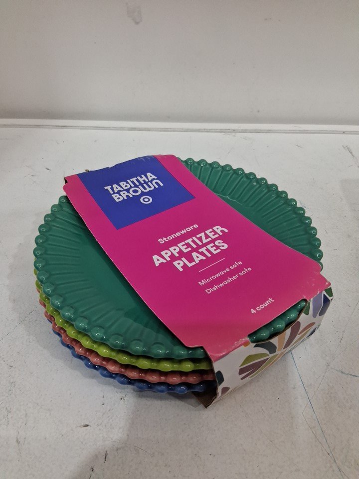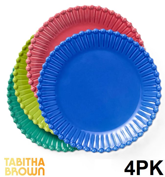 4PK TABITHA brown Beaded Stoneware Appetizer Plate Set - Pink/Teal/Green/Blue