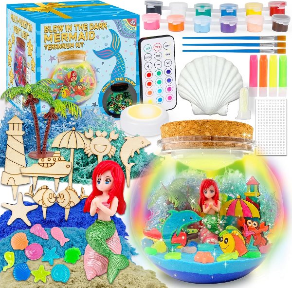 ouker Glow in The Dark Terrarium Crafts Kit for Kid - Mermaid Terrarium