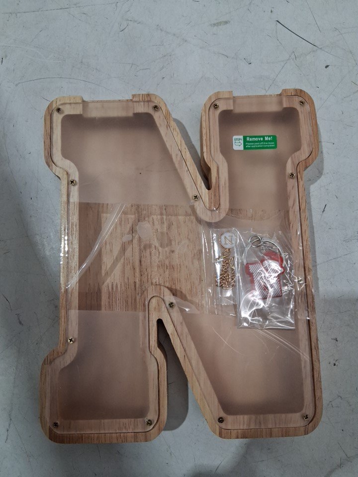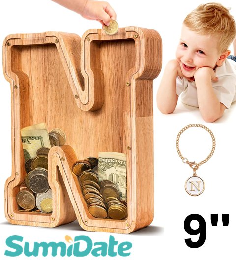 KID'S SummiDate Wooden N Letter Piggy Bank - 9''- BROWN
