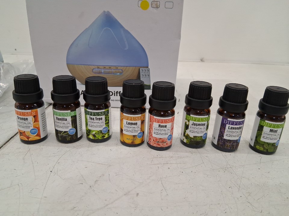 Aroma Diffuser with remote and 8 essential oil set - 500ml - 14 colour lights - multi-colour (model: in2-500d)