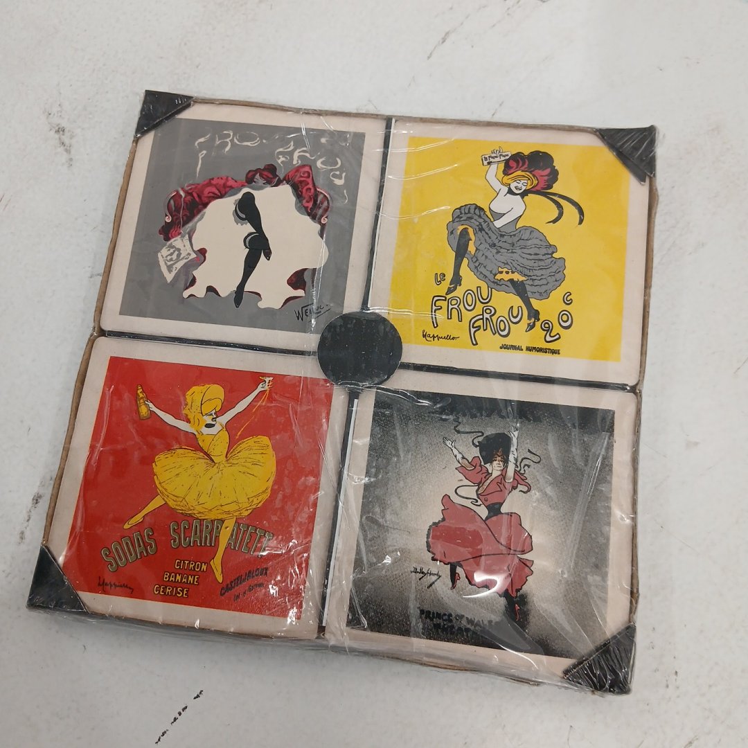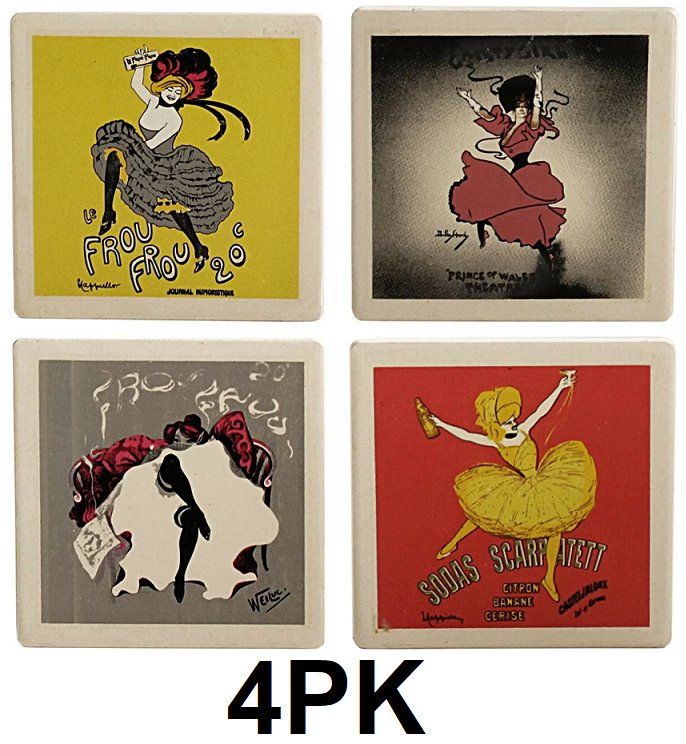 4PK Le Frou Frou Design Ceramic Tile Coasters - French Can Can Girls - Multi