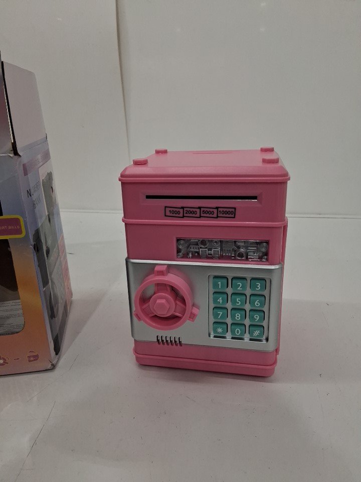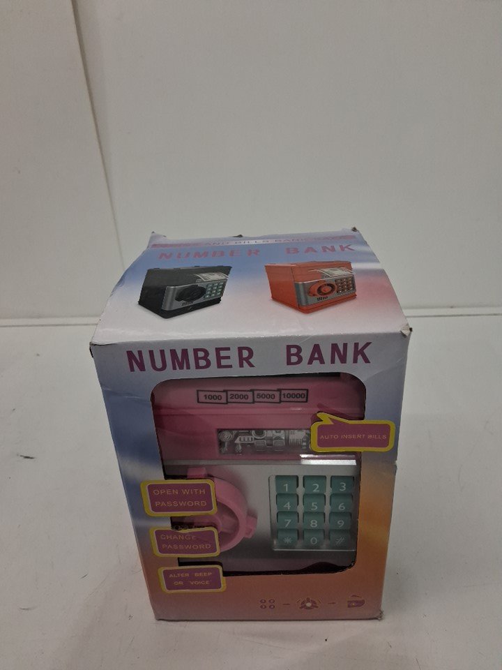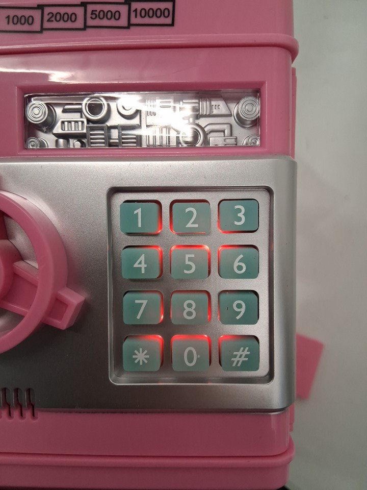 NUMBER BANK COINS AND BILLS SAFE - 5.5" X 5.1" X 7.4" - PINK