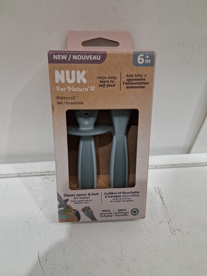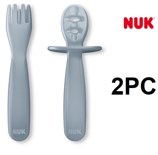 2pc NUK FOR NATURE pretensil dipper spoon and fork set - 6mo+ - grey