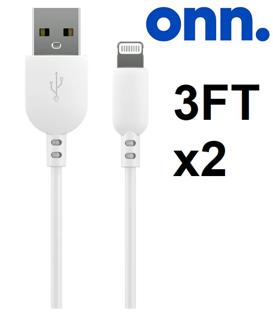 2 Onn. Lightning to USB Cables - FOR APPLE - 3FT./0.9