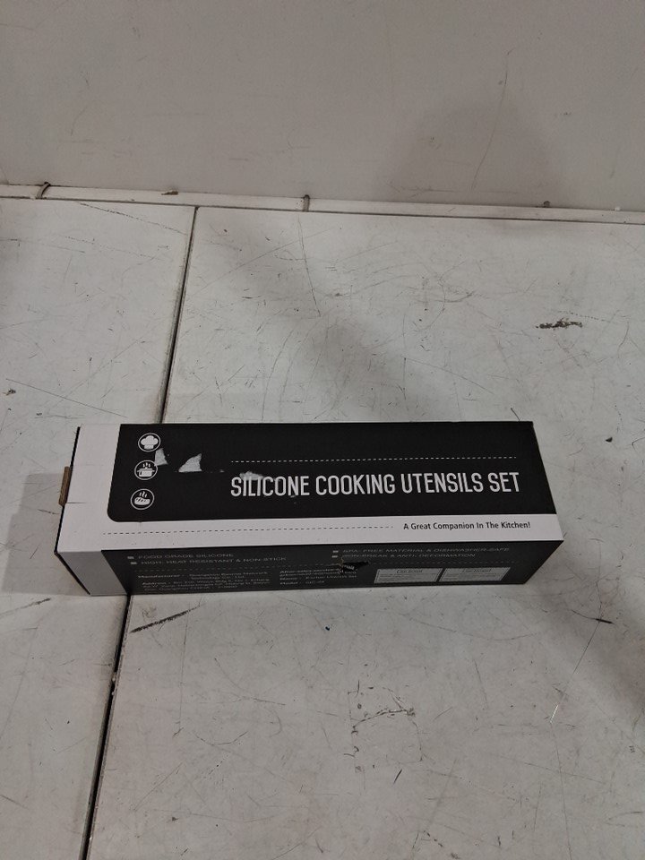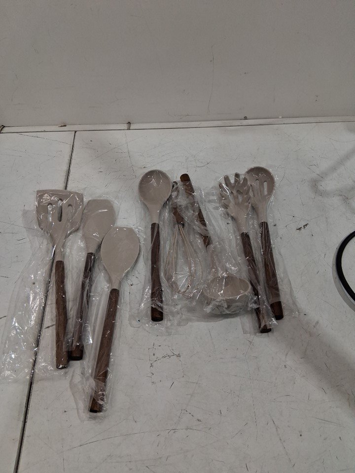 8 Pc Non Stick Silicone Utensil Set with Rounded Wood Handles for Cooking and Baking - grey