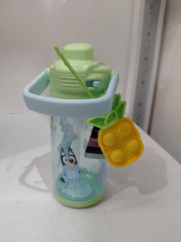 zak! bluey plastic beacon straw water bottle with pop toy - 16oz - blue