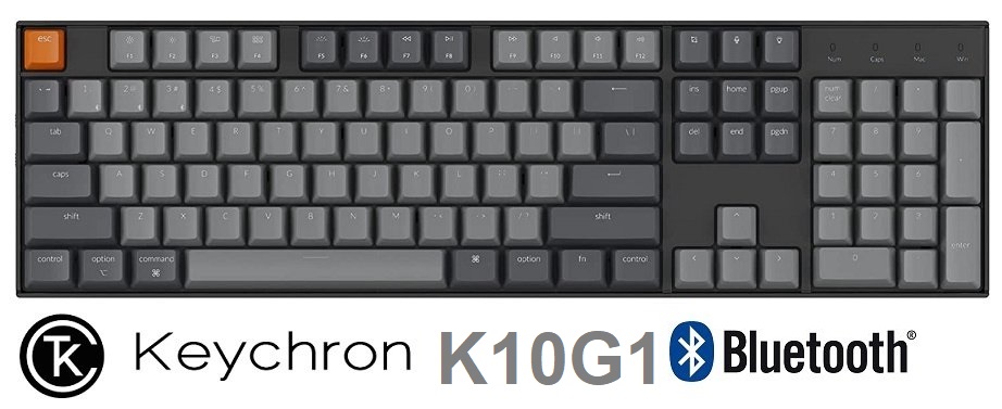 Keychron K10 Full Size 104 Keys Bluetooth Wireless/USB Wired Mechanical Gaming Keyboard , SWAPPABLE RED SWITCH - (MODEL:K10G1)