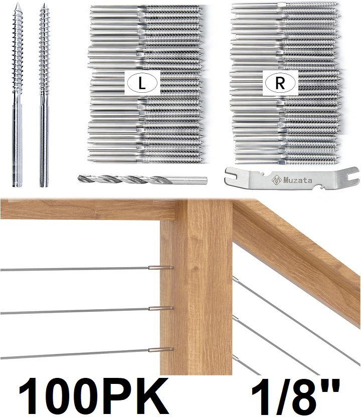 100pk muzata eft and Right Cable Railing Swage Lag Screws Kit Hardware - 1/8" - silver