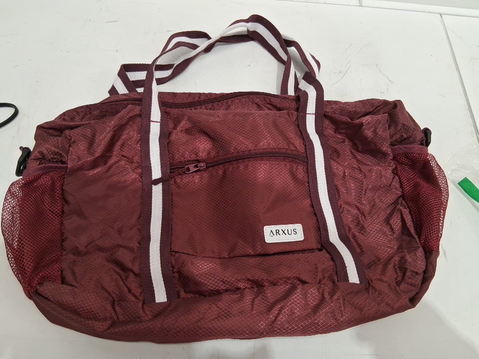 unisex arxus lightweight foldable waterproof luggage duffle bag- 19" x 12" -burgandy/silver