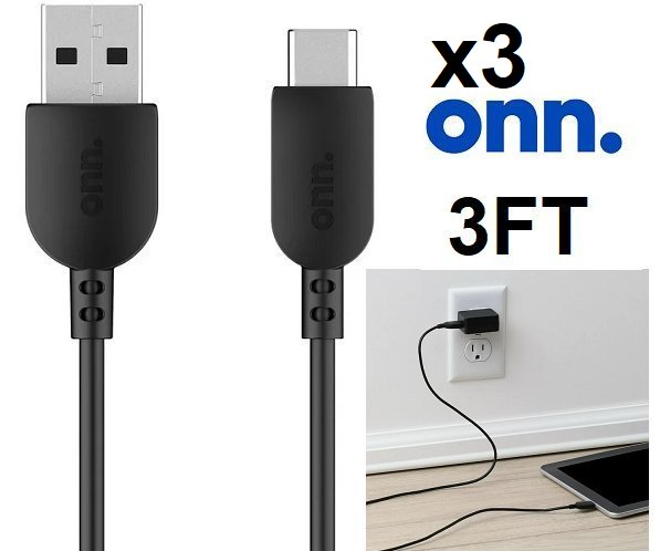 3 onn. Hi-Speed Certified USB-A to USB-C Cable, Transfer while Charging cords - 3ft - black