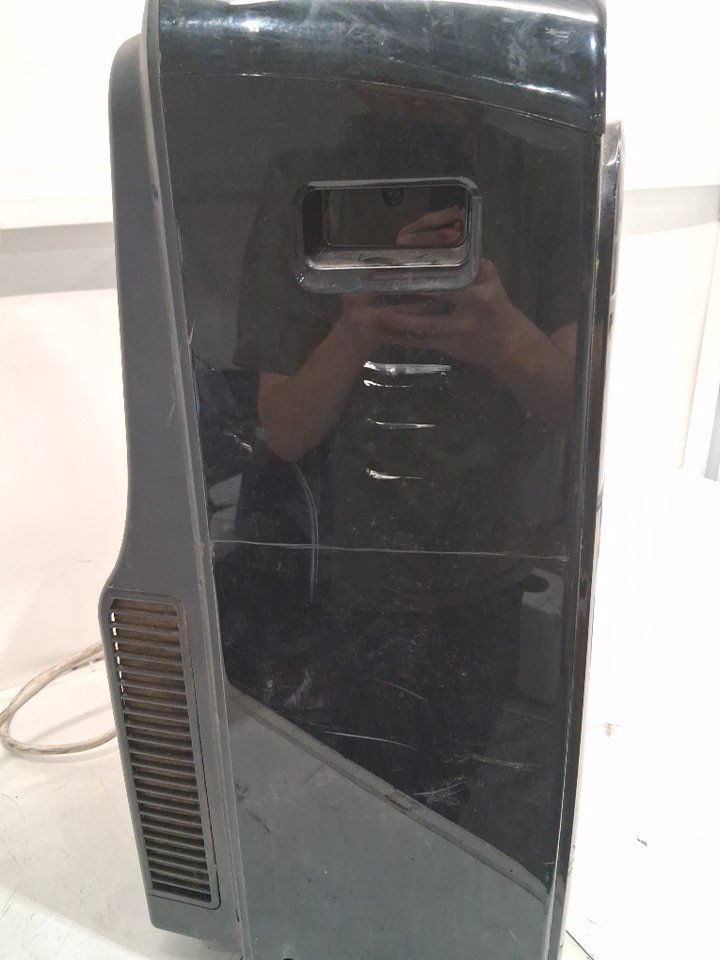 heavy dust build up, some plastic on the back is broken off, missing tube/hose parts. scratches on the front, top and sides