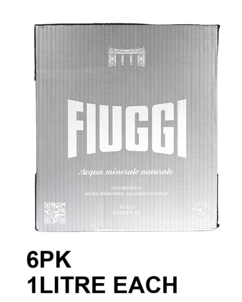 6PK Fiuggi glass bottle Natural Mineral Spring Water - 6LITRES (1LITRE each)