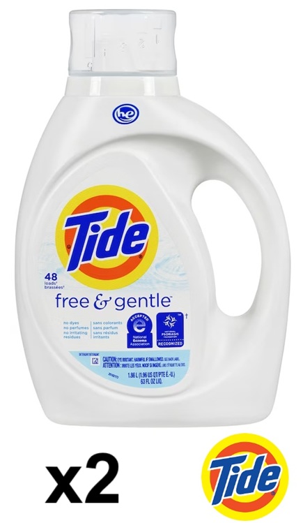 2 Tide High Efficiency Free & Gentle Liquid Laundry Detergent - 2.48L (EACH)