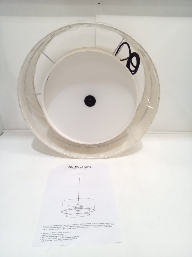 HILUXIA modern double drum fabric pendant light - 18" - beige (model: CL-FB-0007)