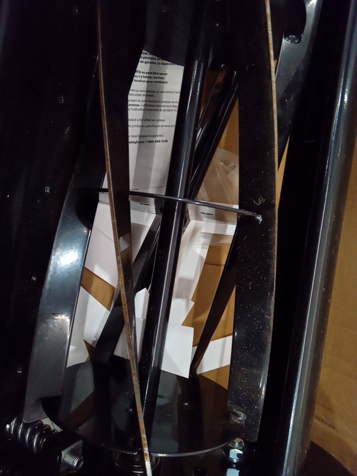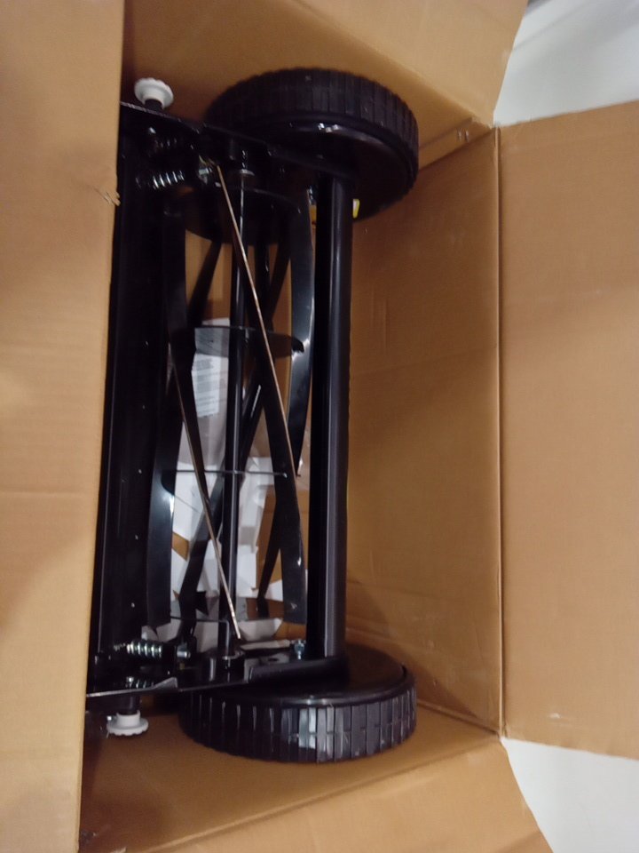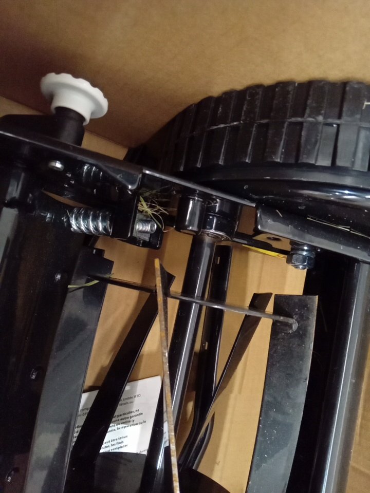 appears that blades are a little rusty and that there is some grass near the wheels (see photo)