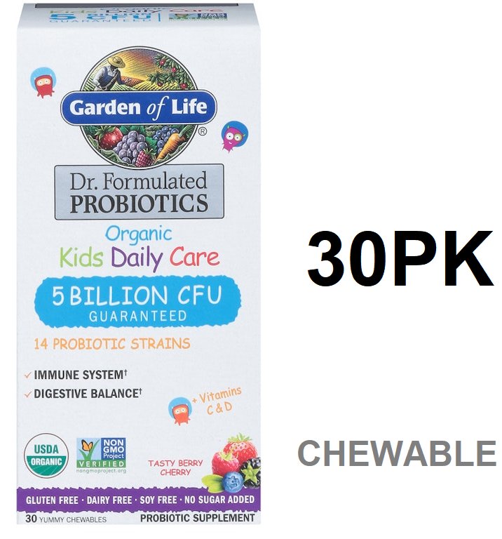 30PK Garden of Life CHEWABLE Organic KIDS Probiotic Daily Care - Tasty Berry Cherry