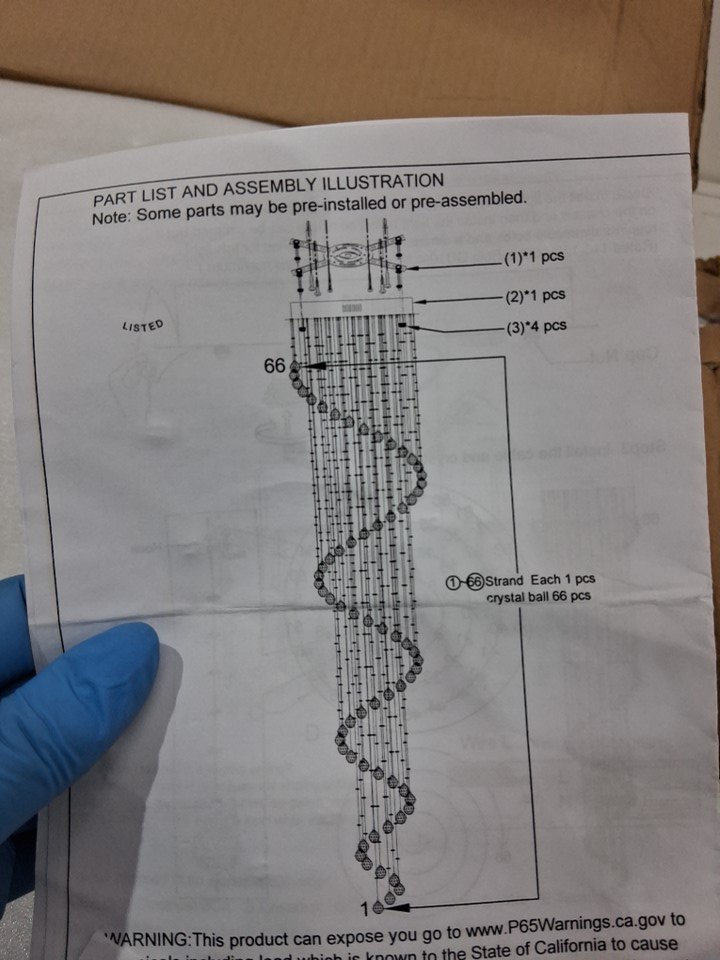 SEFINN FOUR MODERN CRYSTAL CHANDELIER SPIRAL DESIGN 6 LIGHT HIGH CEILING - 20" x 87" (MODEL: 742271416370)